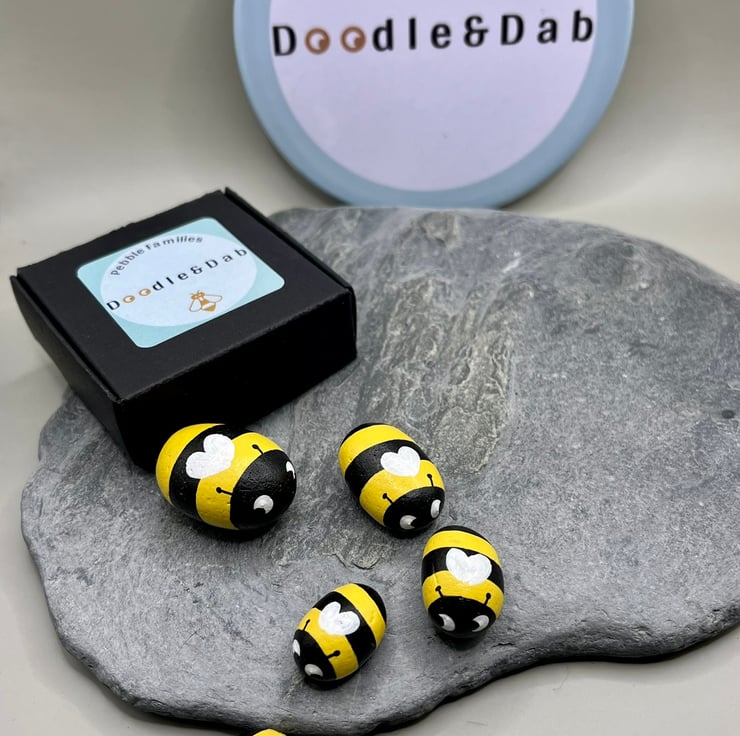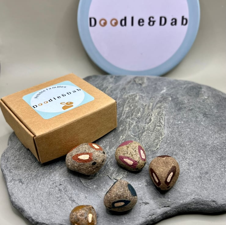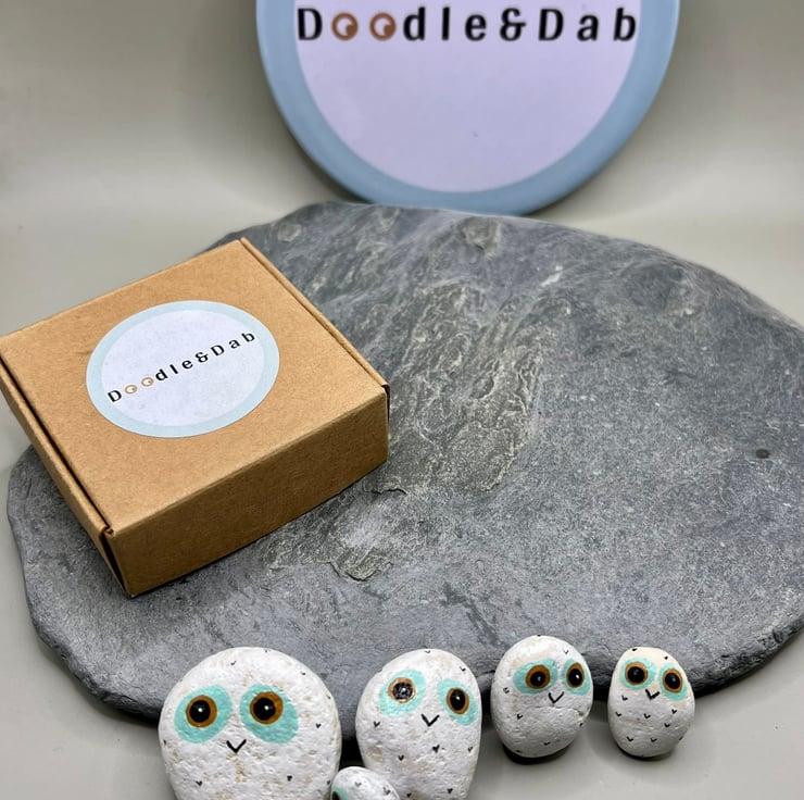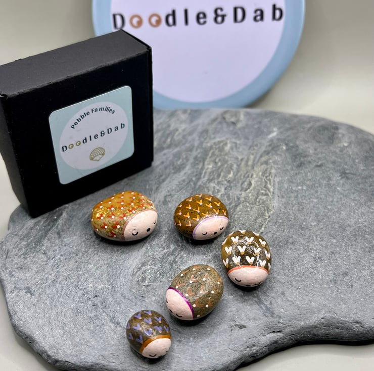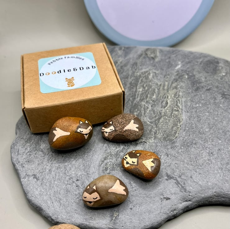 I first started off making individual handpainted pebble animals that people could create a pick n' mix assortment (which I still do at markets). Then for selling in shops I created a box of five as they are easier to display. You can either get a family of five of the same animal in varying sizes or I also do five different animals in a box.