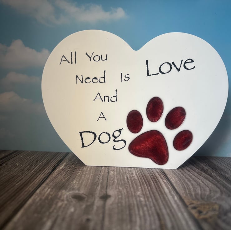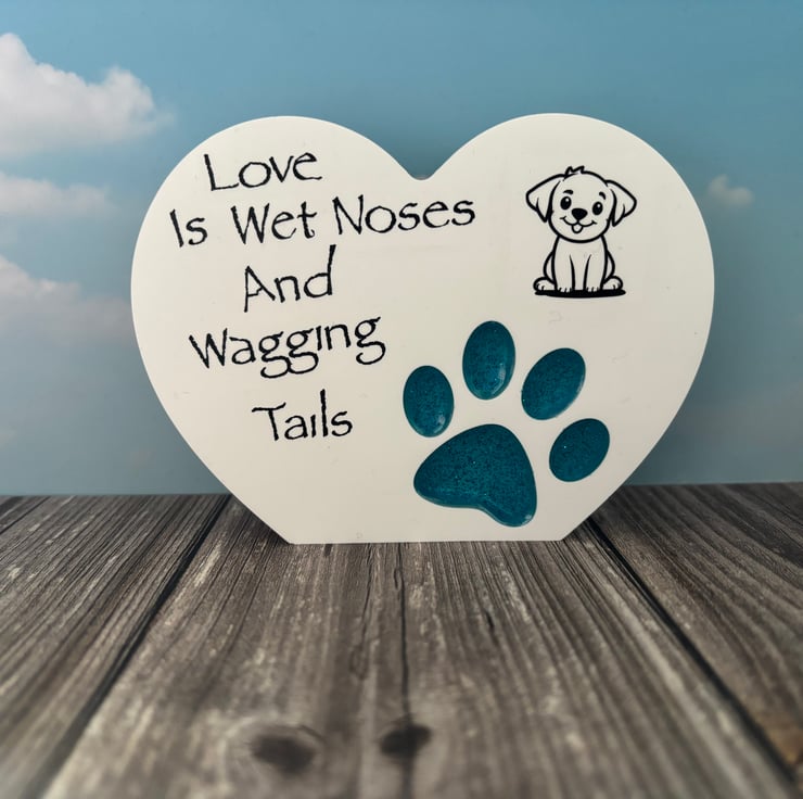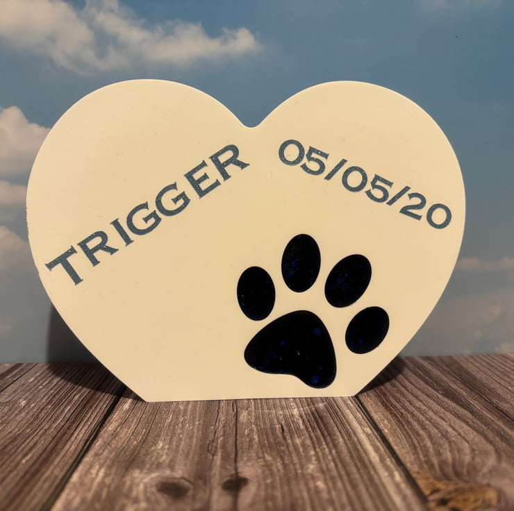 Eco Resin heart with paw print filled with epoxy resin. Personalised.