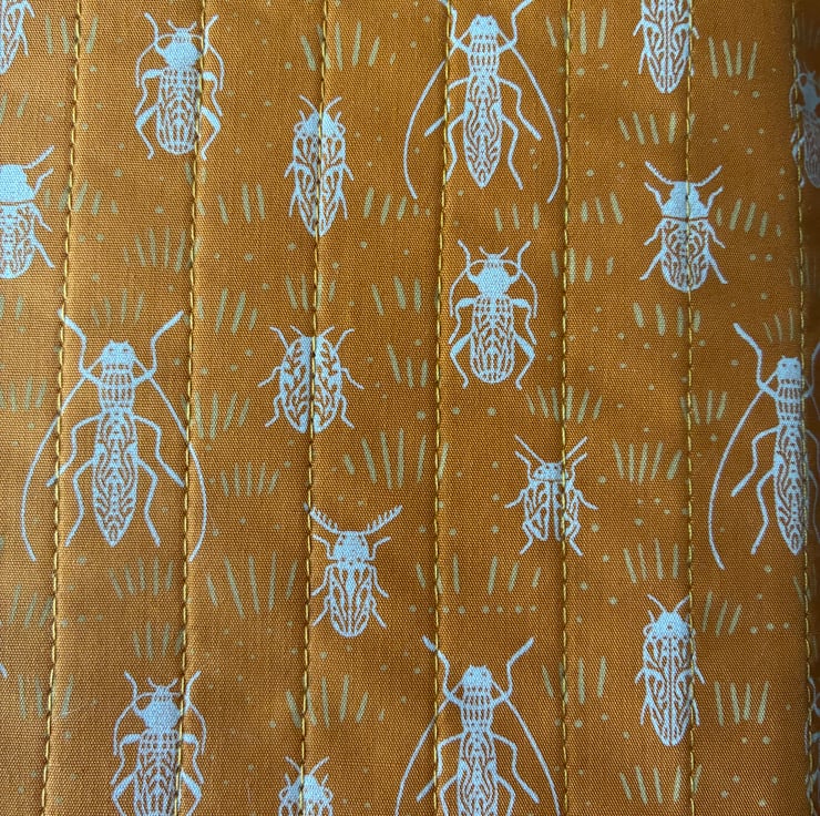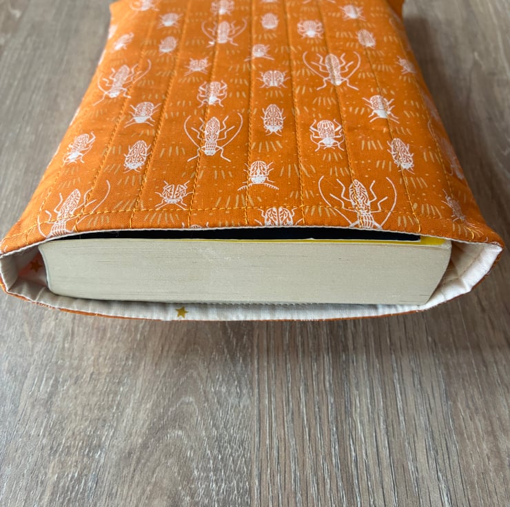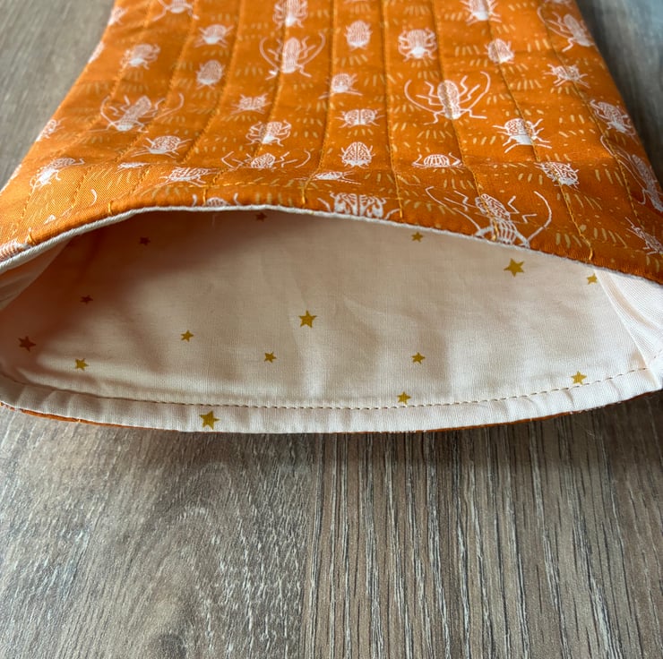 The sleeve is quilted with light orange thread and is fully lined with cream and gold stars cotton fabric.