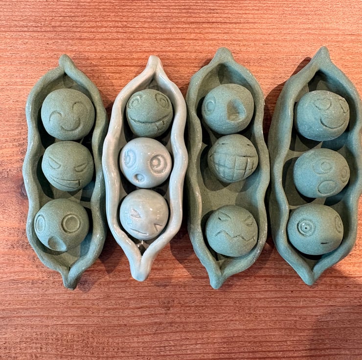 Price is for one peapod containing three peas. Therapeas are emotion peas in a pod, designed as a comfort item like beads and also as a way to notice or share your emotional state. Therapeas are a joyful, grumpy, playful, angry, sad, cheeky gift.