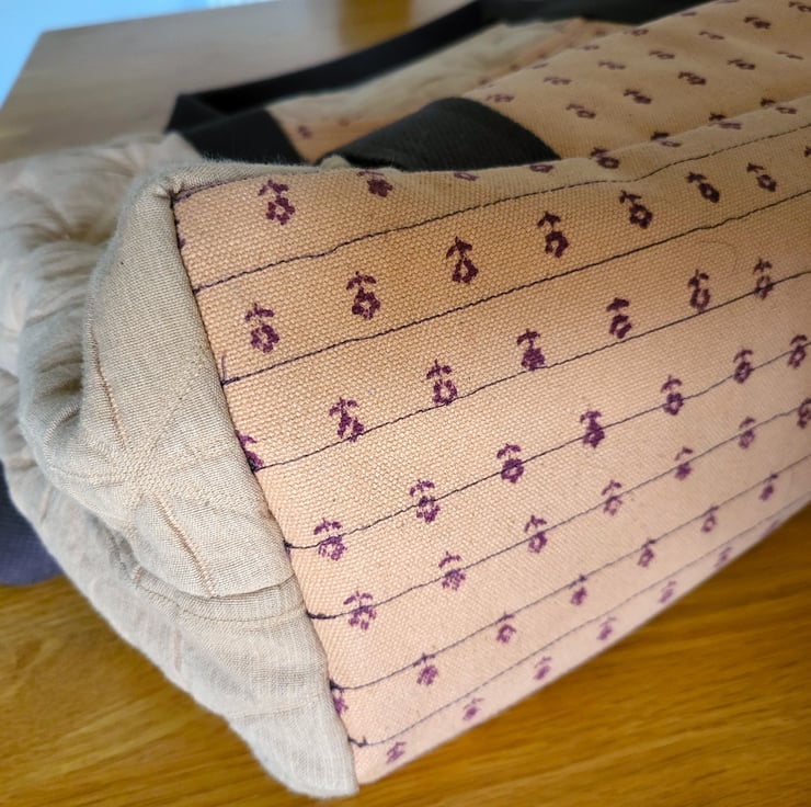 Exterior: Crafted from a beautiful, tactile quilted jacquard cotton in a sophisticated beige/taupe.