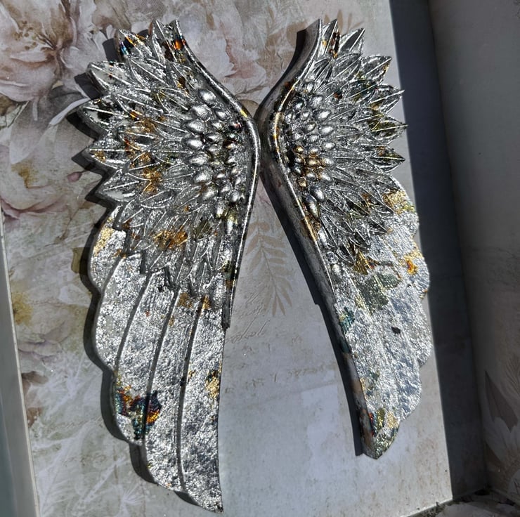 I run subsidised classes for people with long term health conditions and have several participants who feel an affinity with angels. Whilst discussing this I had the idea to create a simple but beautiful pair of wings and gild them with metal leaf.