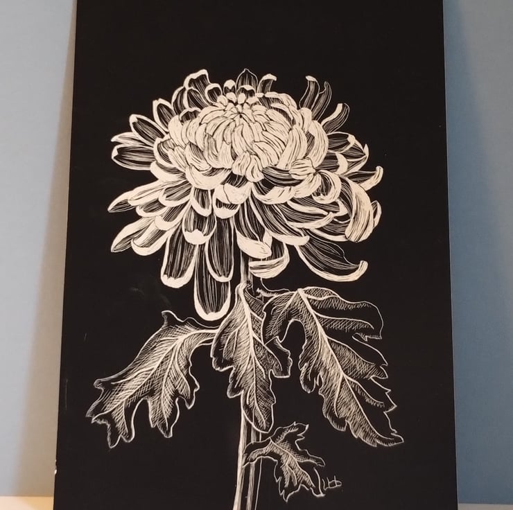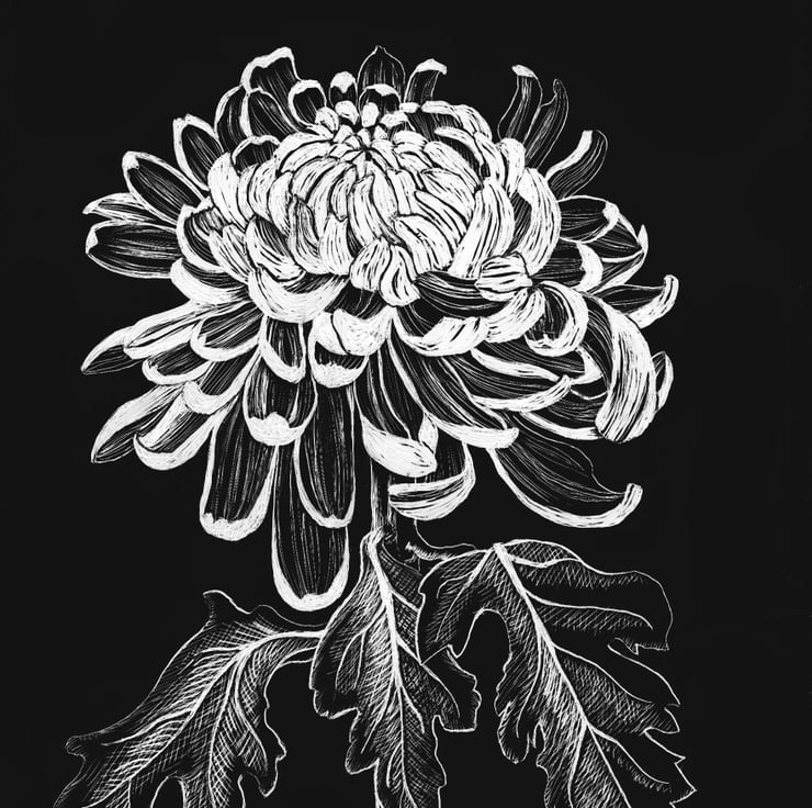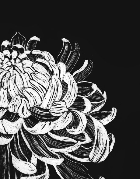 I wanted to capture, through the different marking strengths of the scraping tools, the sturdy full petals of the flower in contrast to the soft leaves.