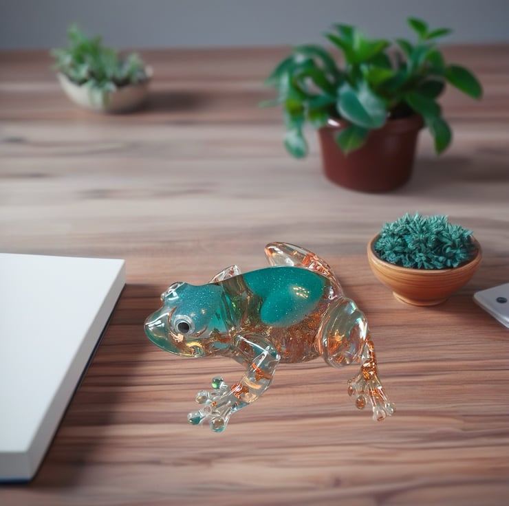 Clear resin with sculpted frog design
