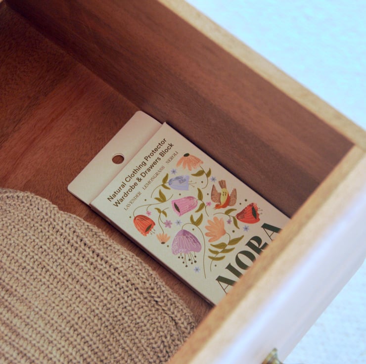 Place the scented block in your drawer, or storage space or hang it in your wardrobe.
