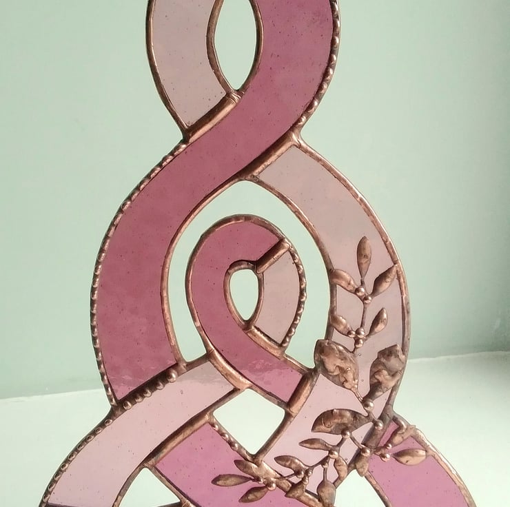 Serene stained glass interlocking Celtic knot design denoting the endless bond between a mother and child. An ideal gift for mother's day!