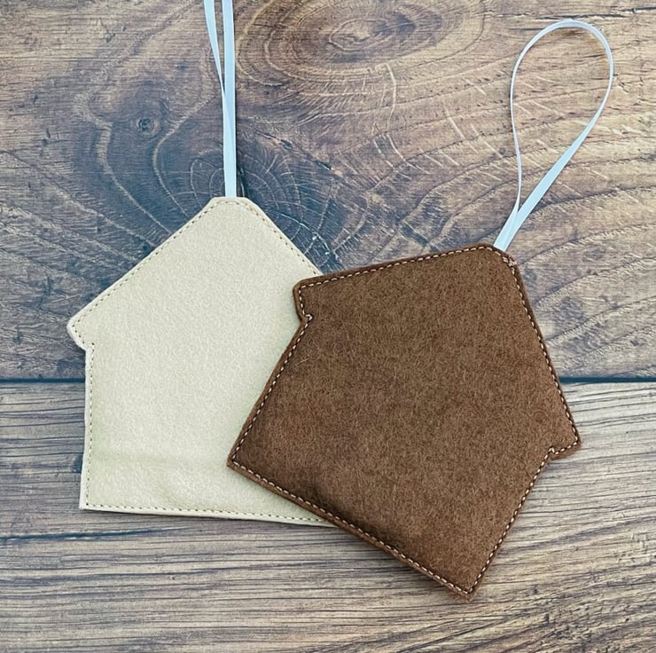Handcrafted from a wool blend felt with a sating ribbon for hanging.