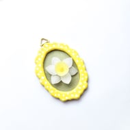The insect element is hand-drawn and made from shrink plastic, carefully heated to create a slightly raised 3D effect that adds depth and character to the piece.