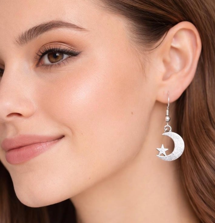 Lightweight and easy to style, these earrings are perfect for everyday wear while still adding a little cosmic sparkle to your look. Their simple celestial design pairs beautifully with both casual outfits and evening styles.