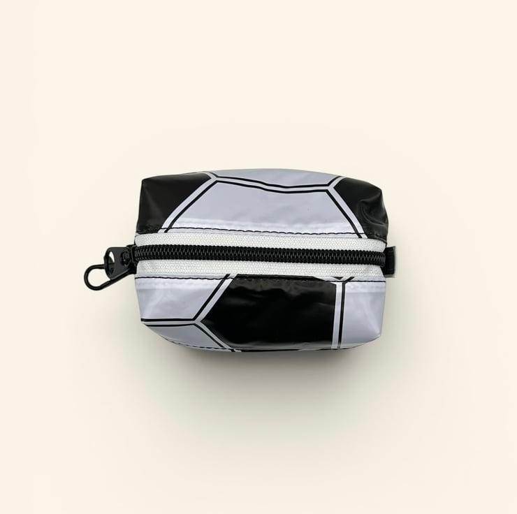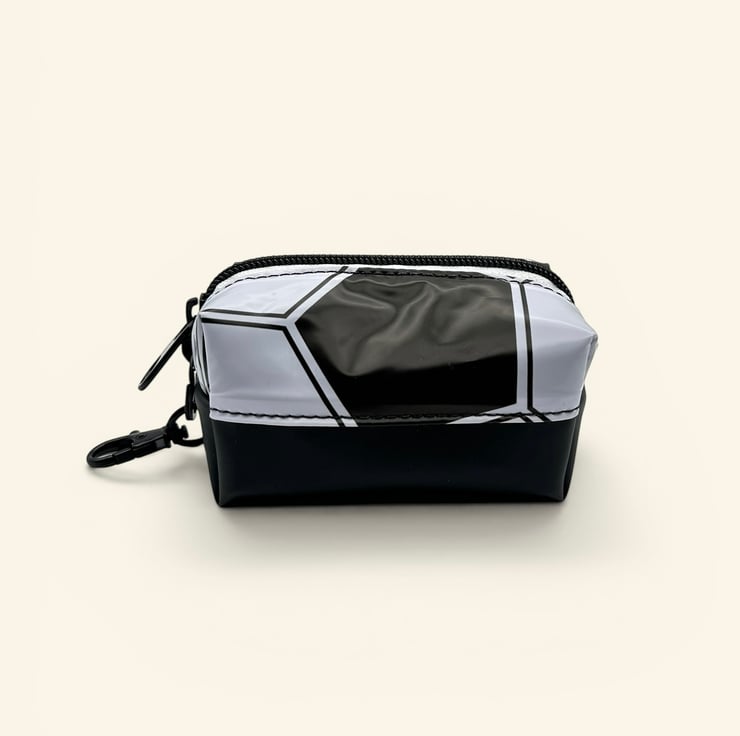 Each chunky keyring pouch is made from broken pool toys heading to landfill, and are lined with scavenged canvas from a boat canopy. There is a sturdy ‘ring pull’ style black metal zipper tab and a handy clip so that the pouch can be added to any bag as a colourful and useful accessory.
