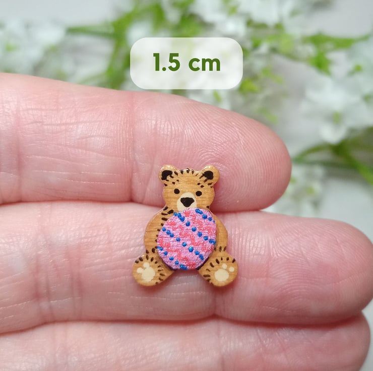 This handmade Tiny Easter Egg Bear is a miniature hand-painted teddy bear holding a colourful decorated Easter egg, created as a charming Easter decoration, collectable teddy bear, or thoughtful spring gift. Each tiny bear is carefully crafted and individually painted, so every piece has its own unique character.