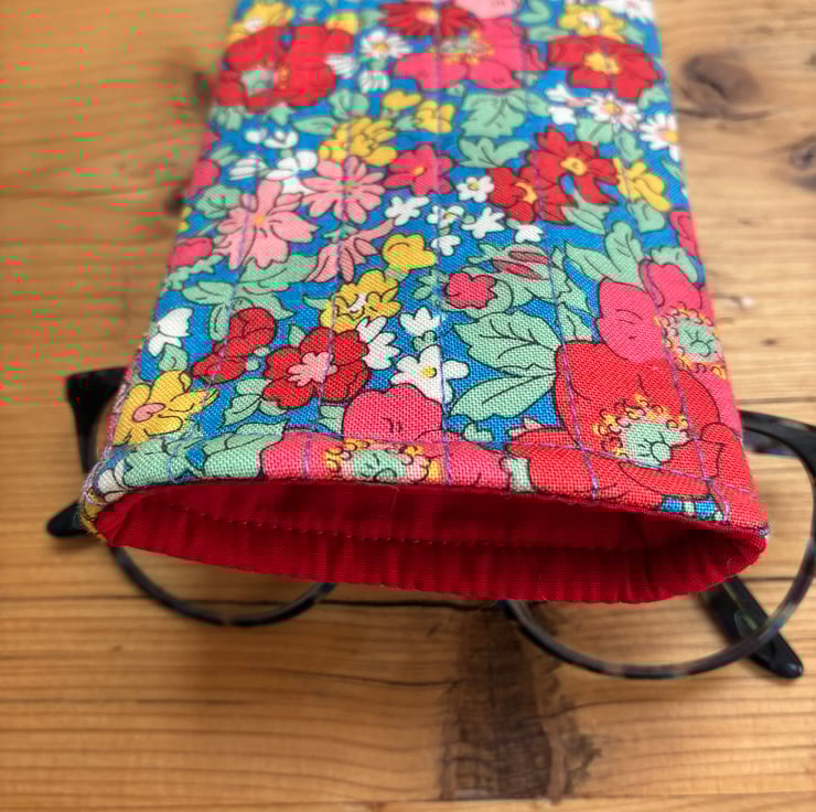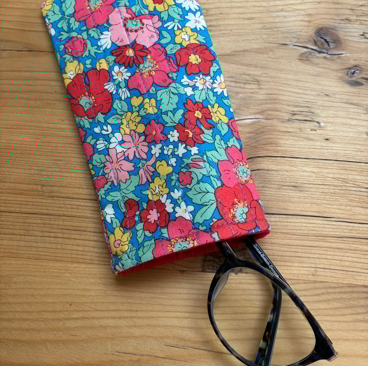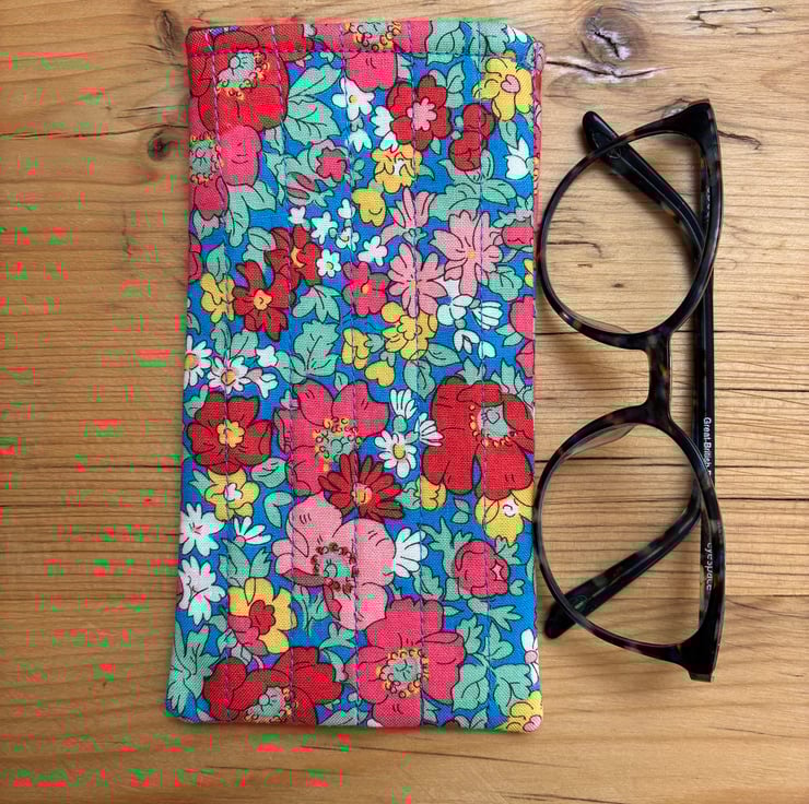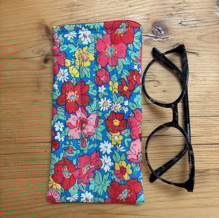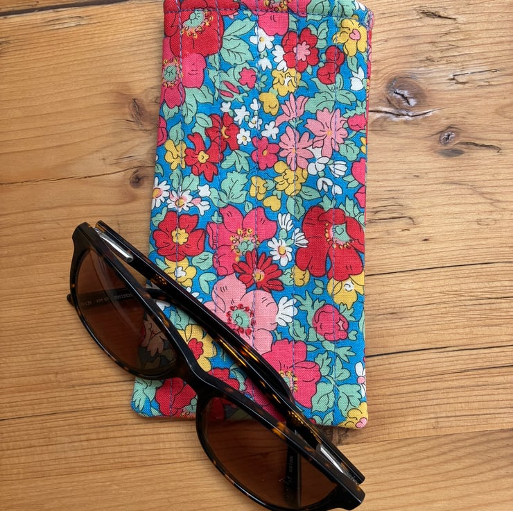 The padded slip in style glasses/sunglasses case is made in this lovely Liberty of London Cosmos flower print fabric.