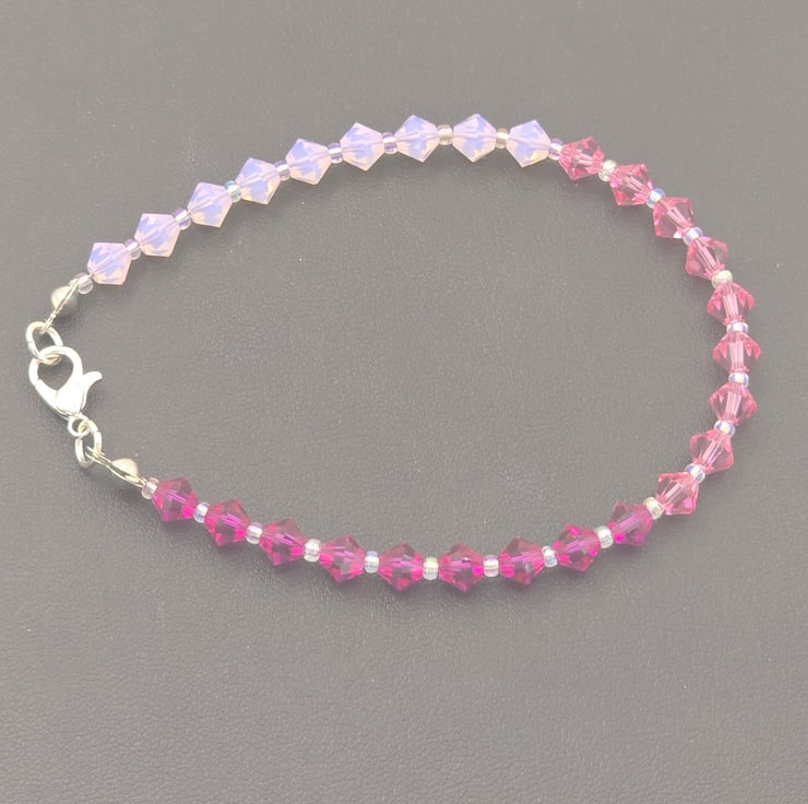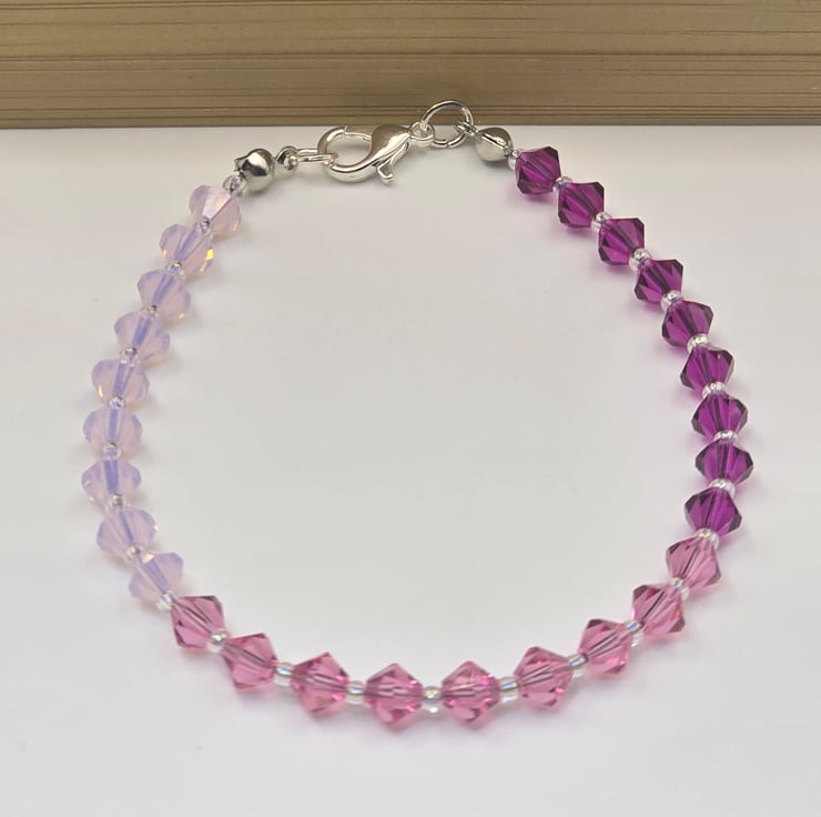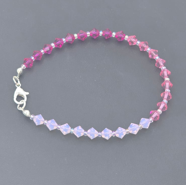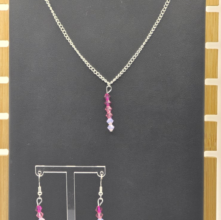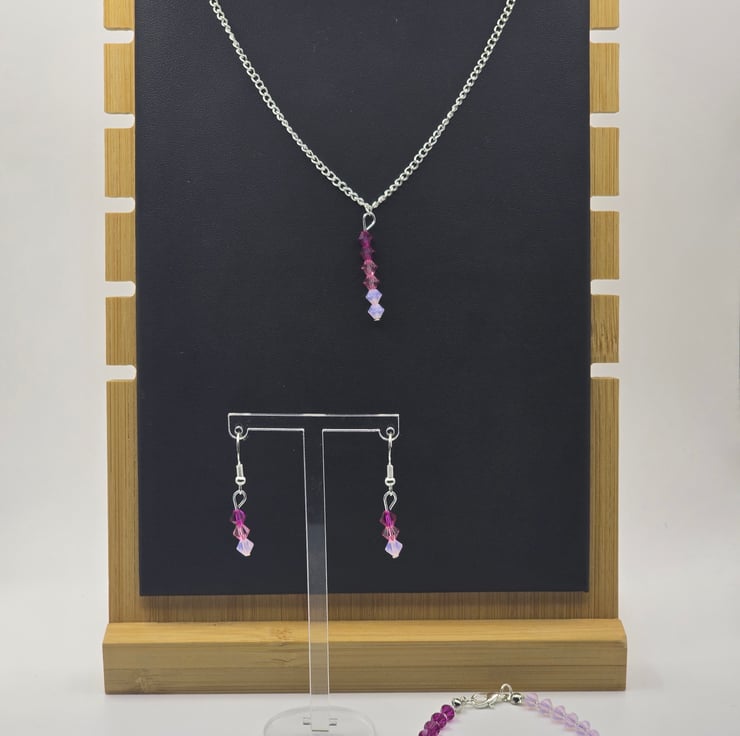 The jewellery set has been made using Preciosa Crystal Bicone beads in the colours Rose Opal, Pink Sapphire and Fuchsia.