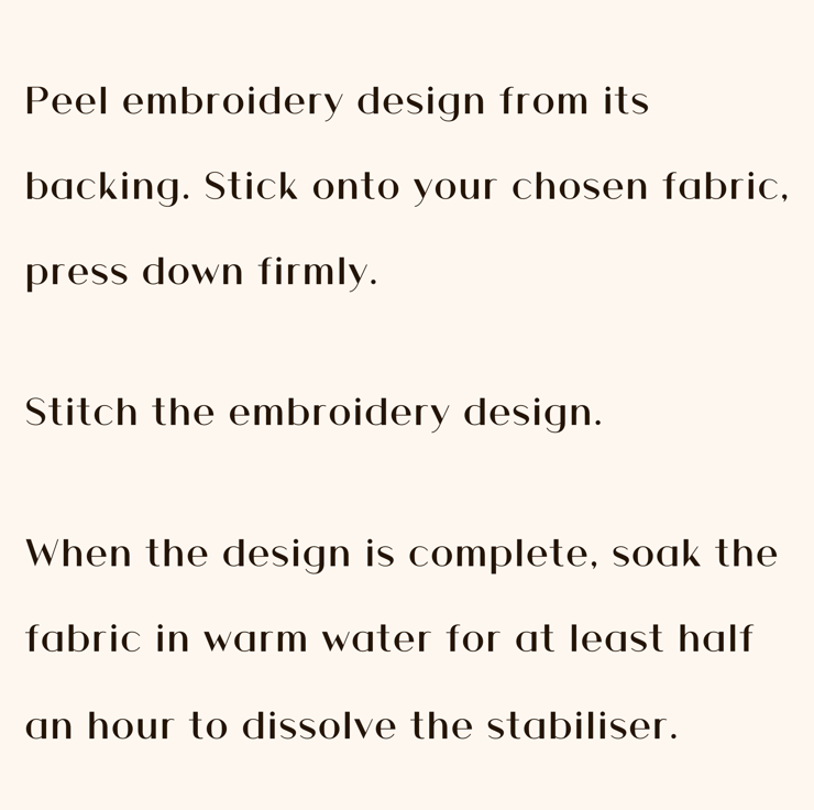 This single-use embroidery design is printed on water soluble stabiliser.