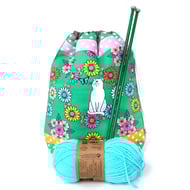 Handmade using our mint Textured Pebbles fabric on the front and a quilted plain dark blue cotton back and lining. All fabrics are good quality 100% cotton. Handwash in cool water. Colours include mint green, dark blue and coral pink.