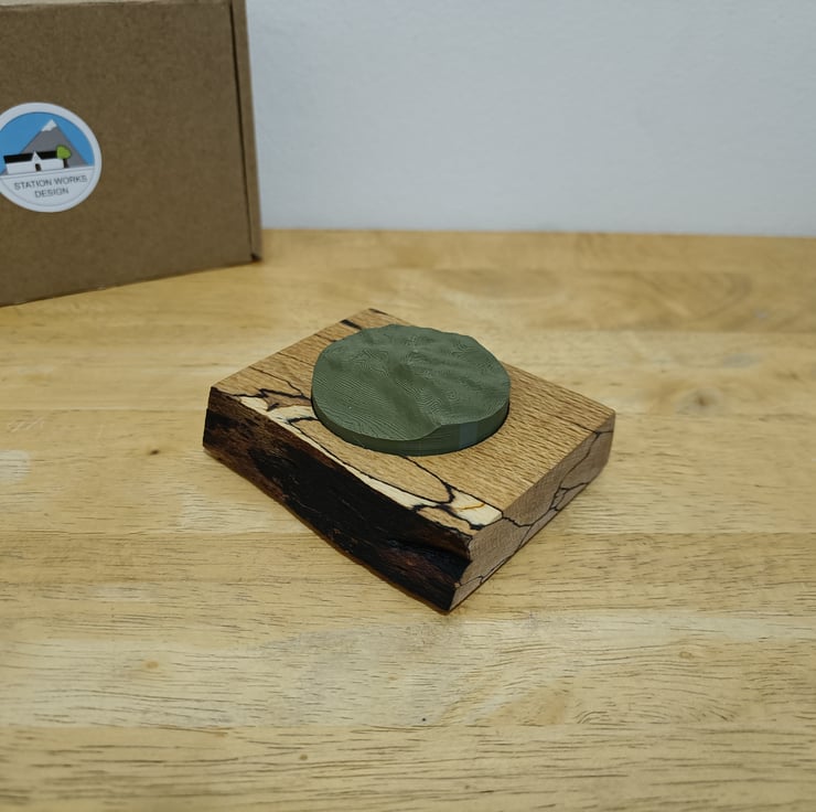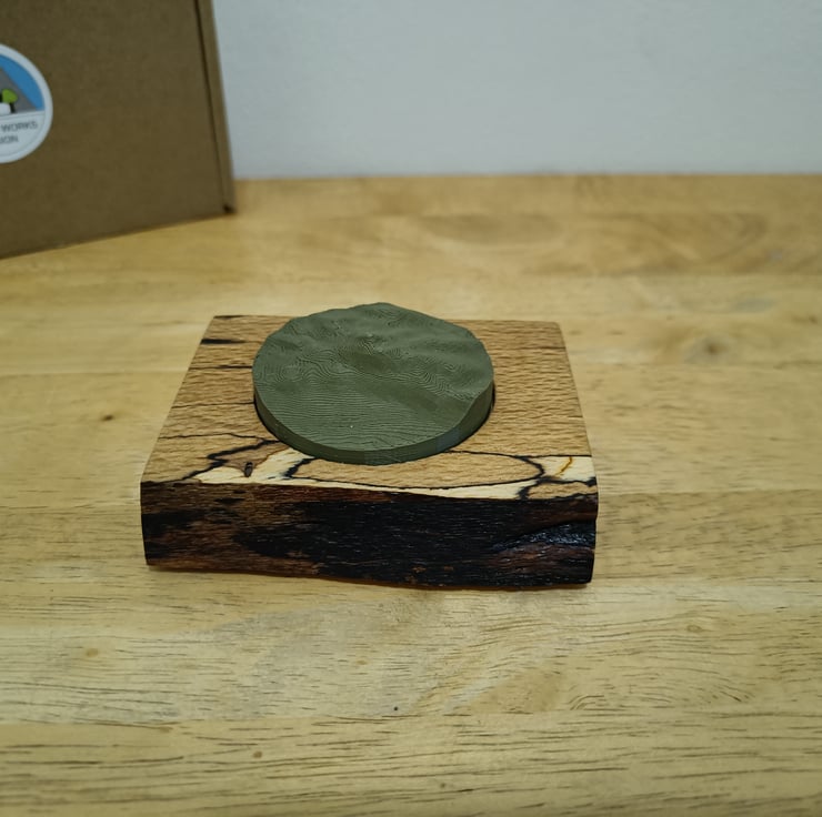 3D printed model mountain of Norman's Law, situated north of the scenic village of Falkland in Fife, Scotland. The model is tastefully set in a spalted beech base.
