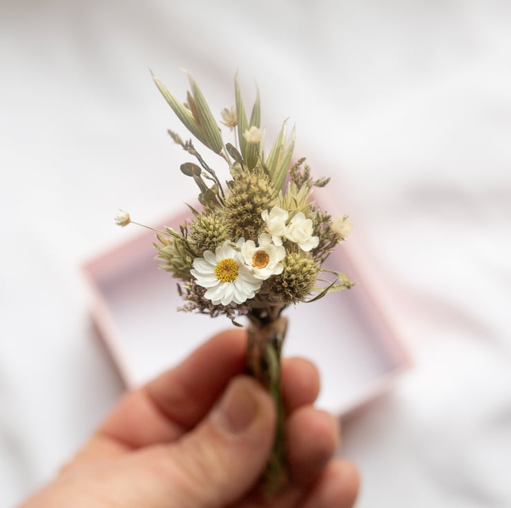 A small pink gift box containing a beautiful mixed dried flower mini posy