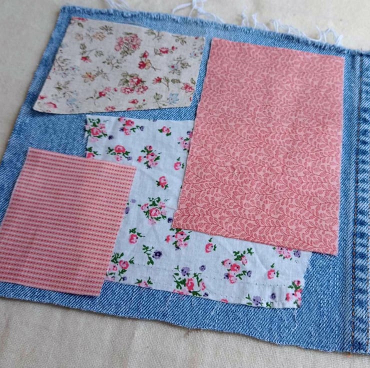 Cut from a pre-loved pair of jeans, the denim base piece is a really firm foundation on which to stitch some of these beautiful vintage and salvaged remnants. There are over 30 pieces so you will have lots left over for another project.
