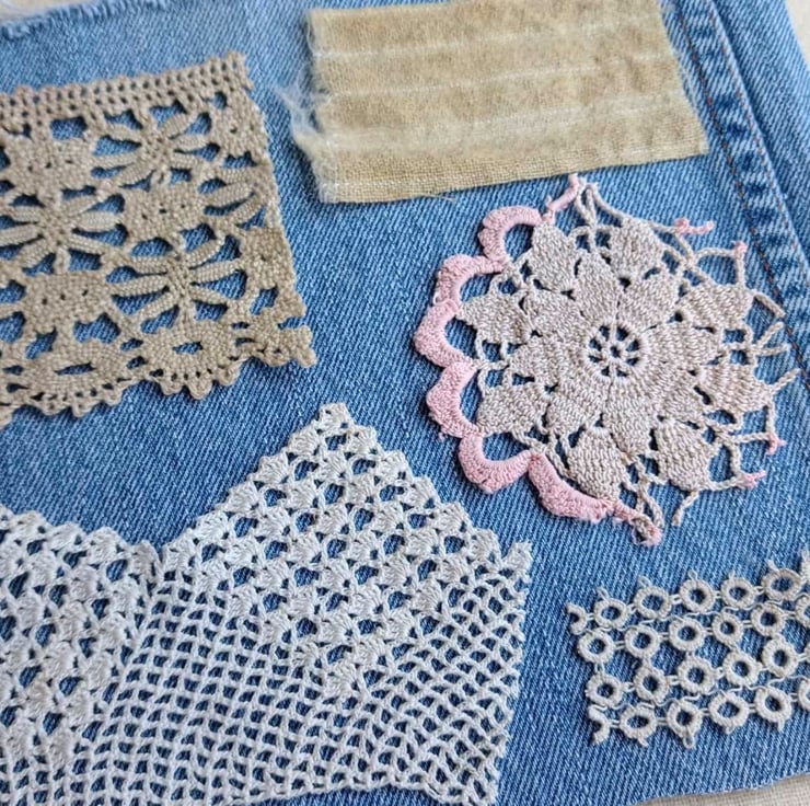 - snippets of vintage cotton crochet motif and laces
