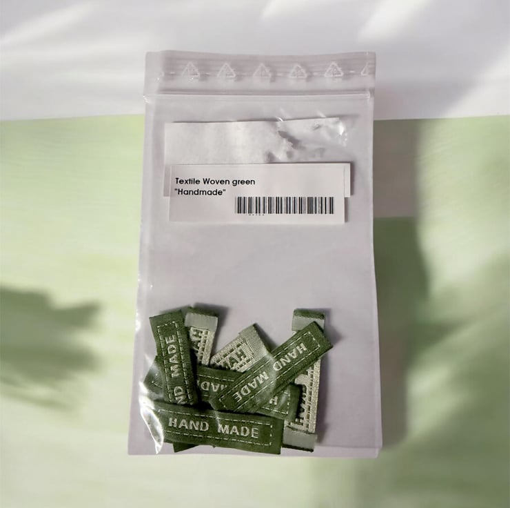 Woven “Hand Made” Label, pack of 10, colour Green, with white wording, Washable, colour fast, craft labels.
