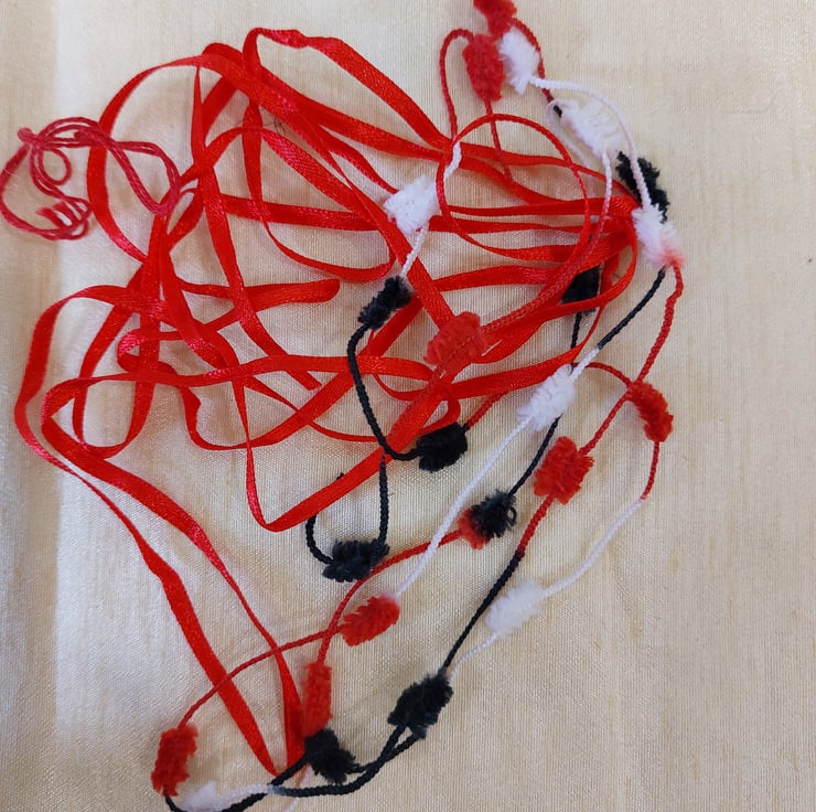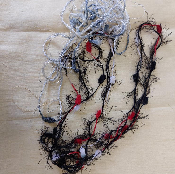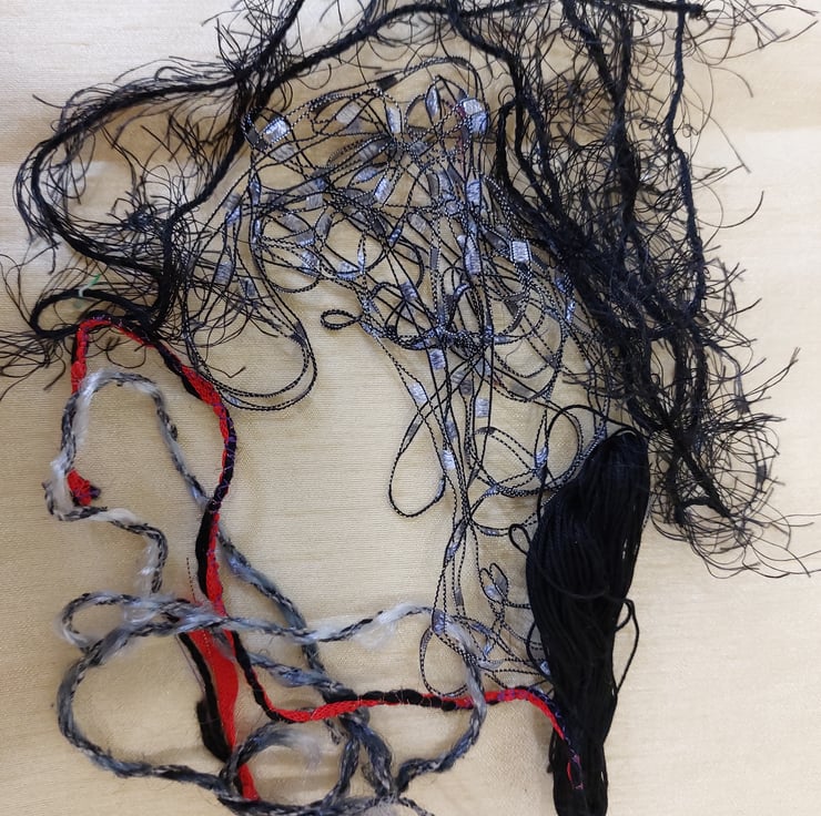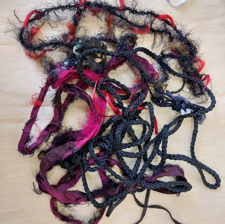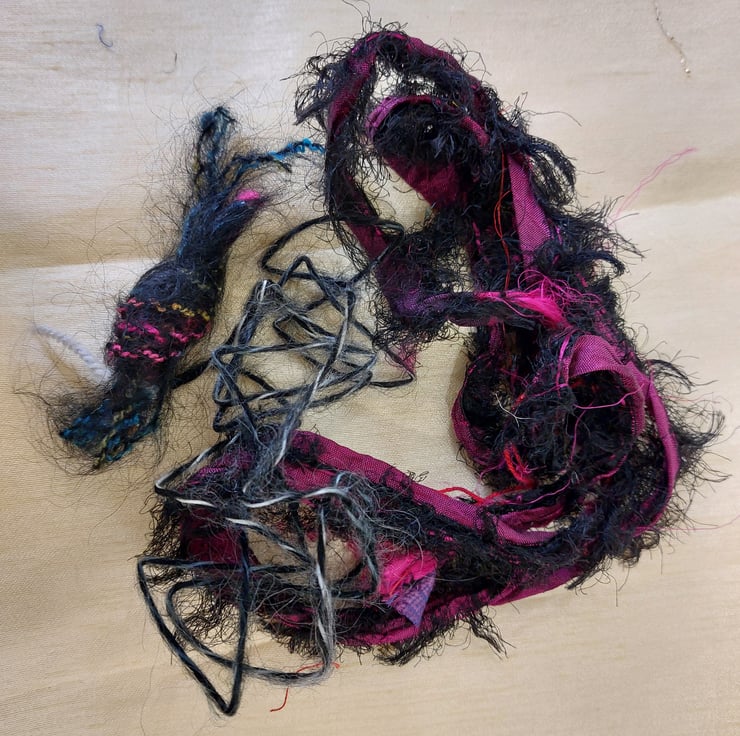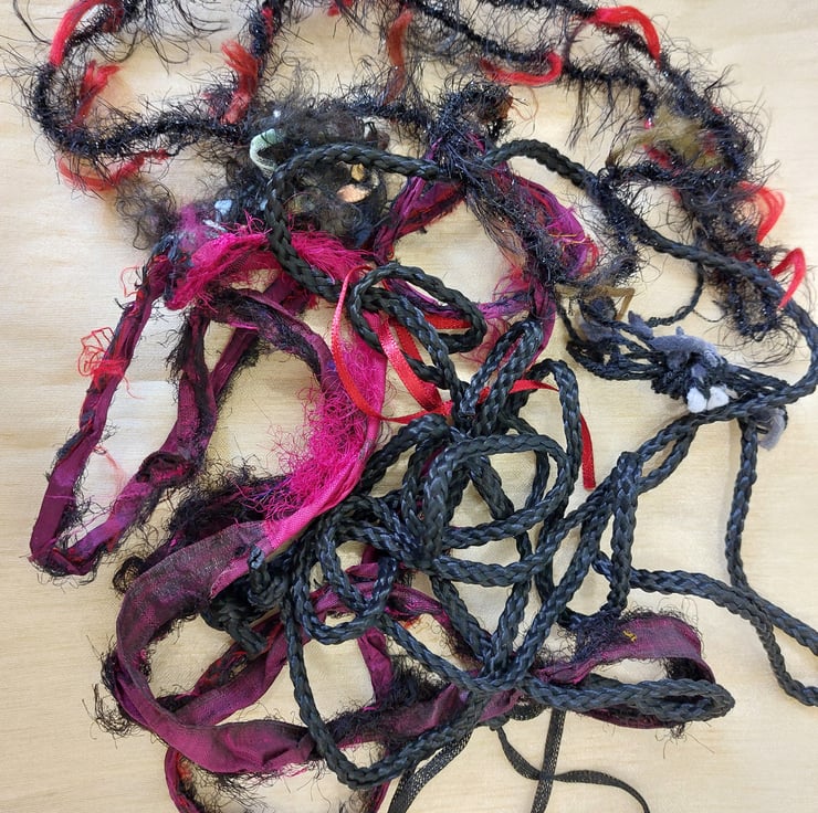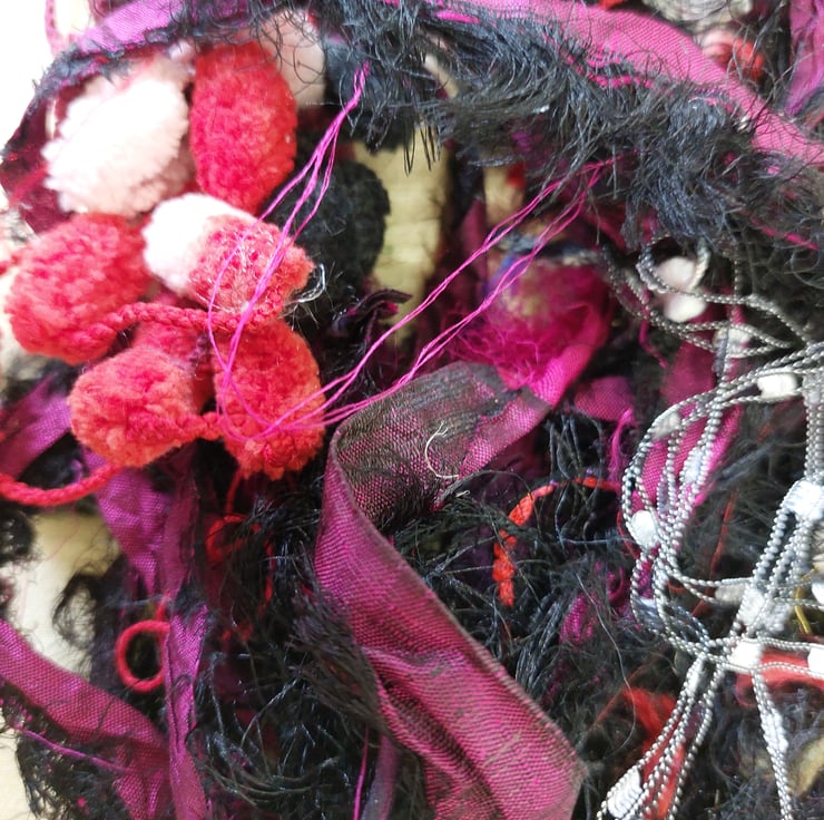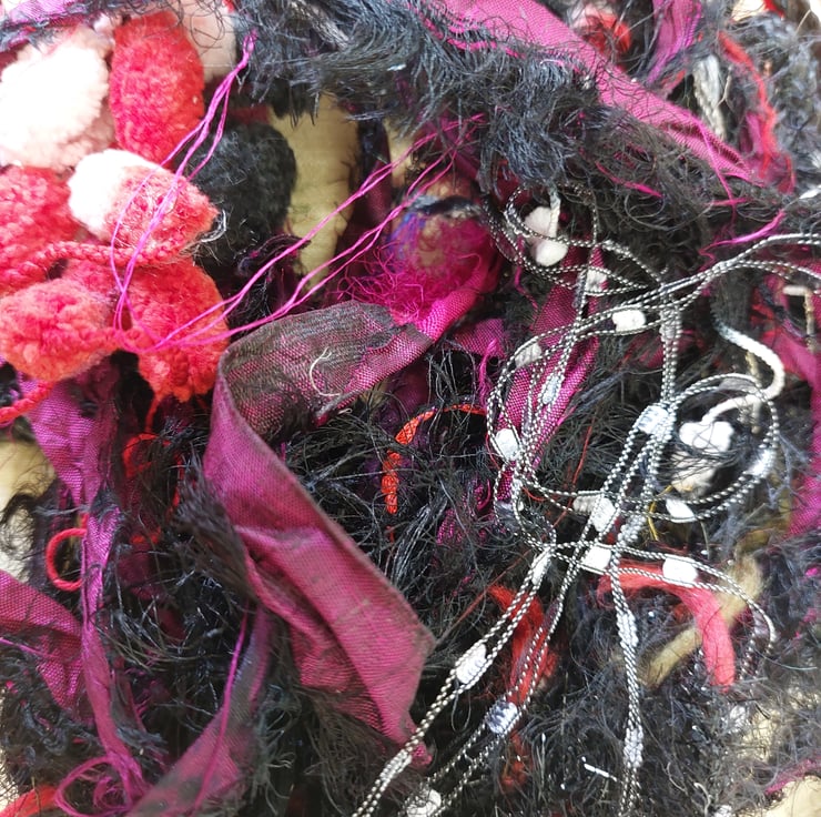 Great value pack of black, reds, silver and purple threads and yarns and silk waste. Ideal for collage and embroidery. Colours may vary due to monitor calibration. Photos depict all the items you will receive.