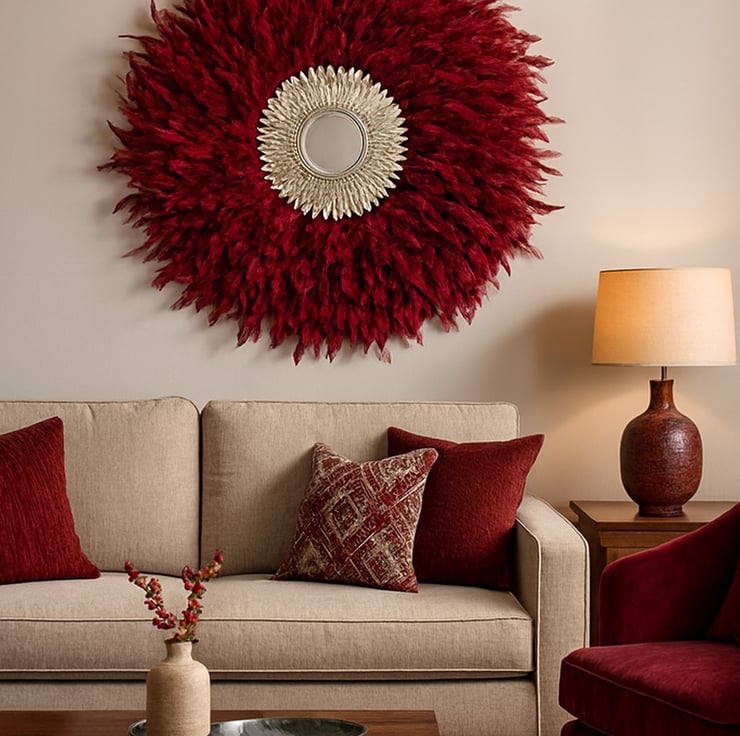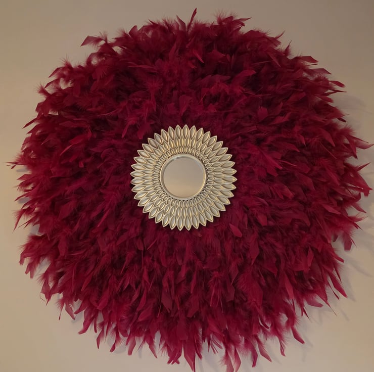 Bring texture, artistry, and an undeniable bohemian vibe to your space with this stunning Handmade Feather Mirror.