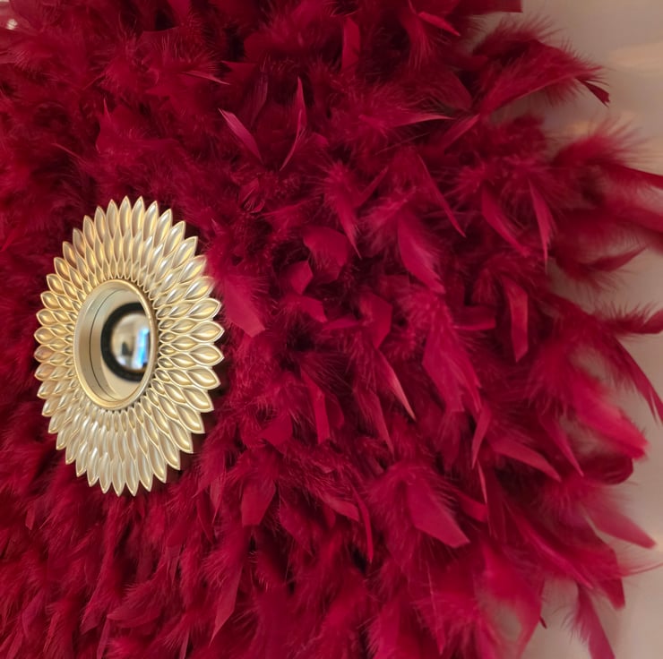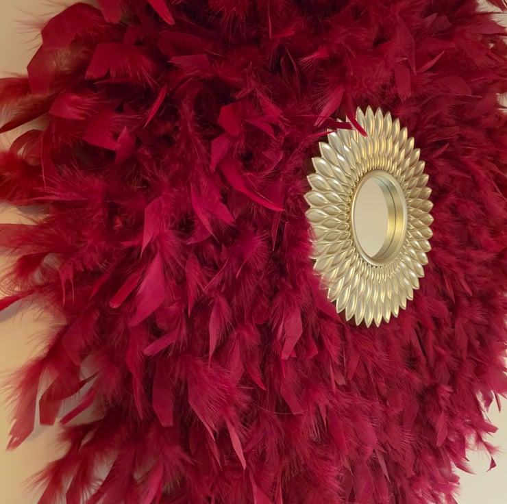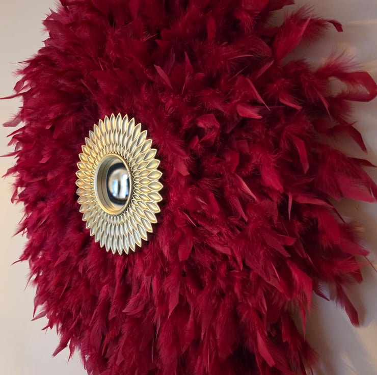 Cherry Red Feather Mirror - Handmade - One Of A Kind - Juju