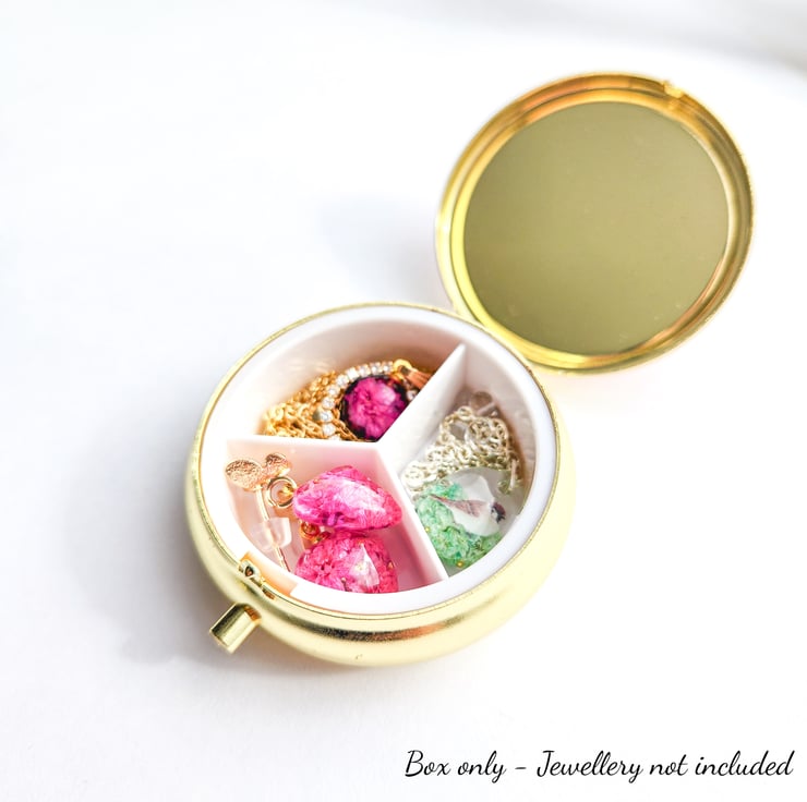 Insude the box are three compartments, ideal for keeping small jewellery pieces organised.