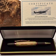 A unique and genuinely hand turned wooden ballpoint pen and a velvet protective pouch is included in the price.