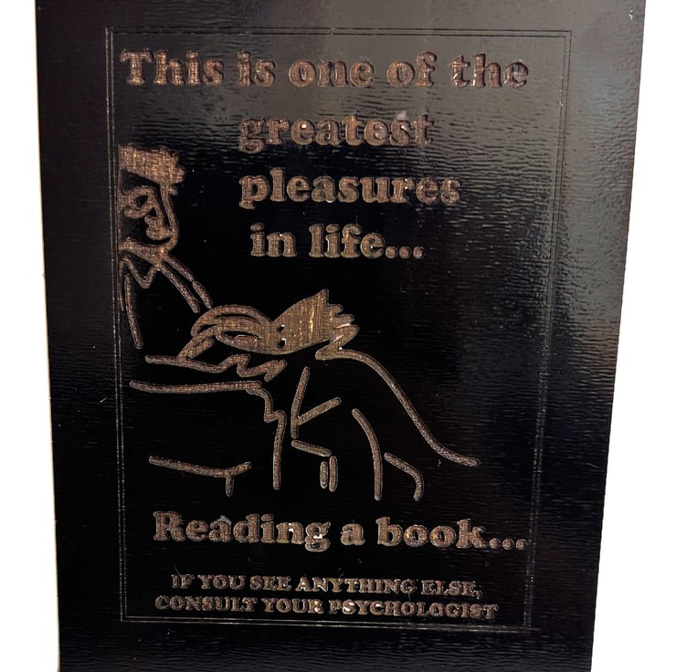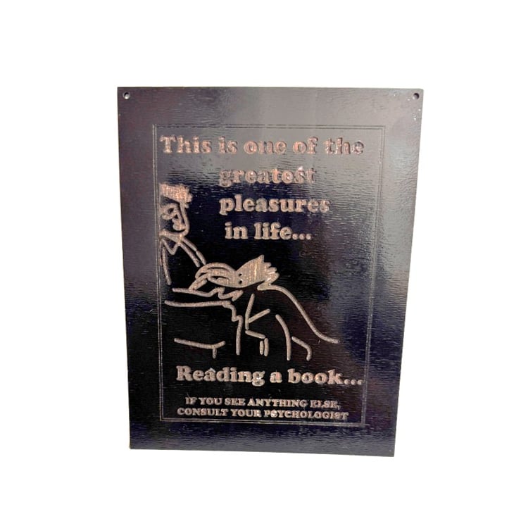 This wooden humour plaque is a perfect find for anyone looking for funny signs, novelty gifts, optical illusion art, book-lover décor, wooden wall signs, or unique reading-themed gifts.