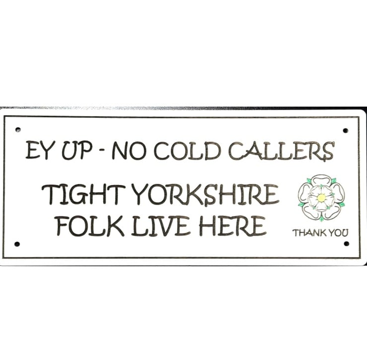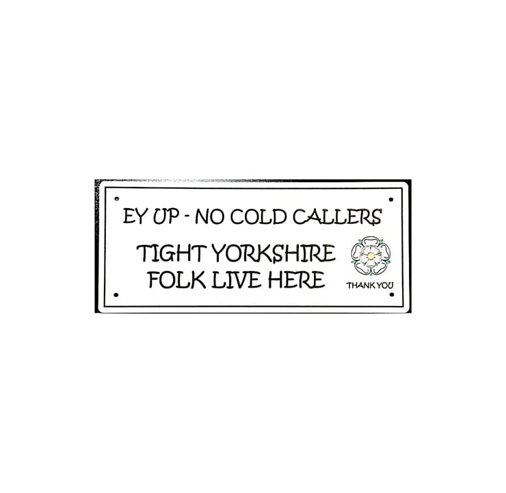 Text: “No Cold Callers – Tight Yorkshire Folk Live Here."