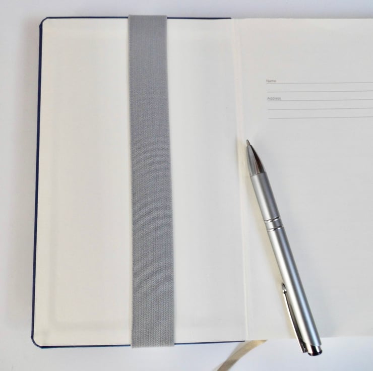A mini pencil case designed to be kept on the front cover of your diary or journal, held in place with an elastic strap. Just slip it on the front cover and you can always have a pen and pencil to hand. Add it to whichever notebook you are using for the day.