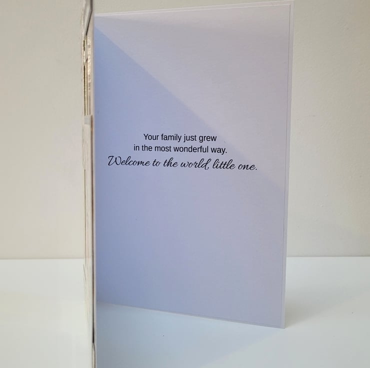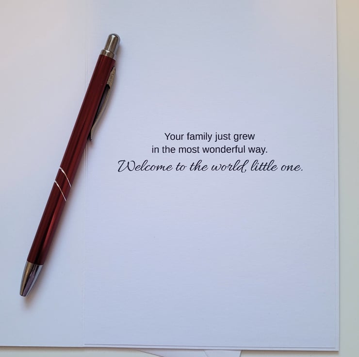- Internal card sentiment reads "Your family just grew in the most wonderful way. Congratulations"