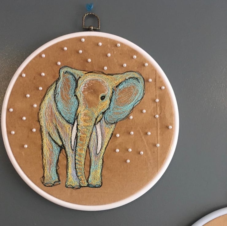 Colourful Elephant is a beautiful and colourful embroidered decoration pieces suitable for any place in the home. Elephant is framed in a 27cm white rubber embroidery hoop, is sewn on cotton fabric and has small white beads that complements the frame and elephant as it helps bring out it details. This piece would make a lovely gift for any Elephant or even animal lover.
