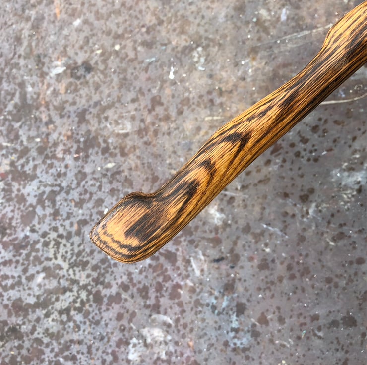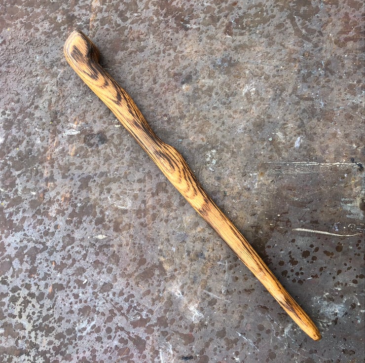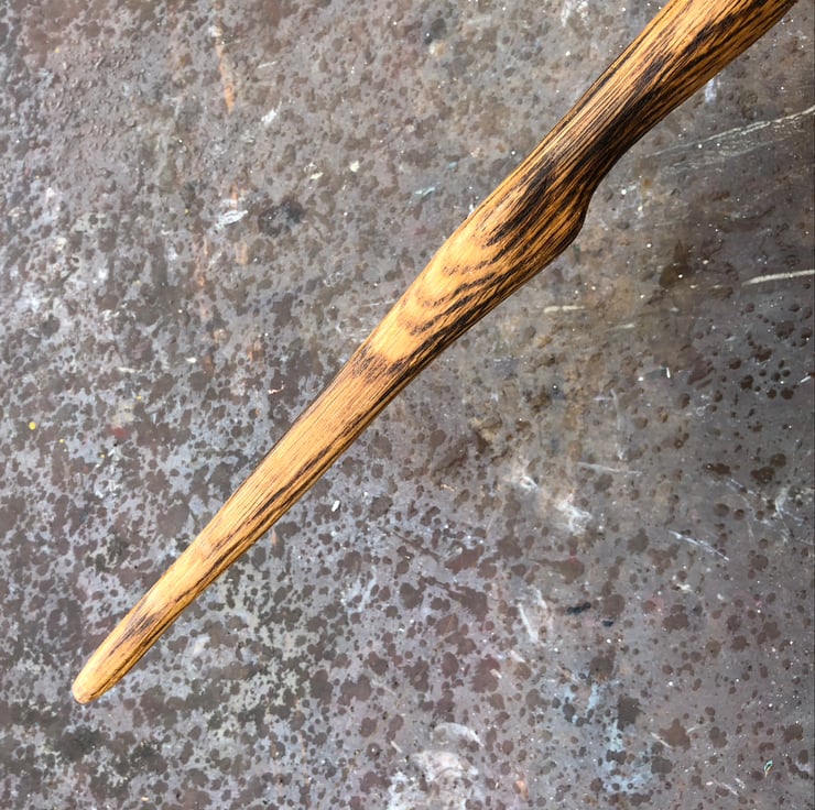 A very dramatic flamed Oak wand that has been charged in a copper cauldron within a Pictish stone circle during March's full moon.
