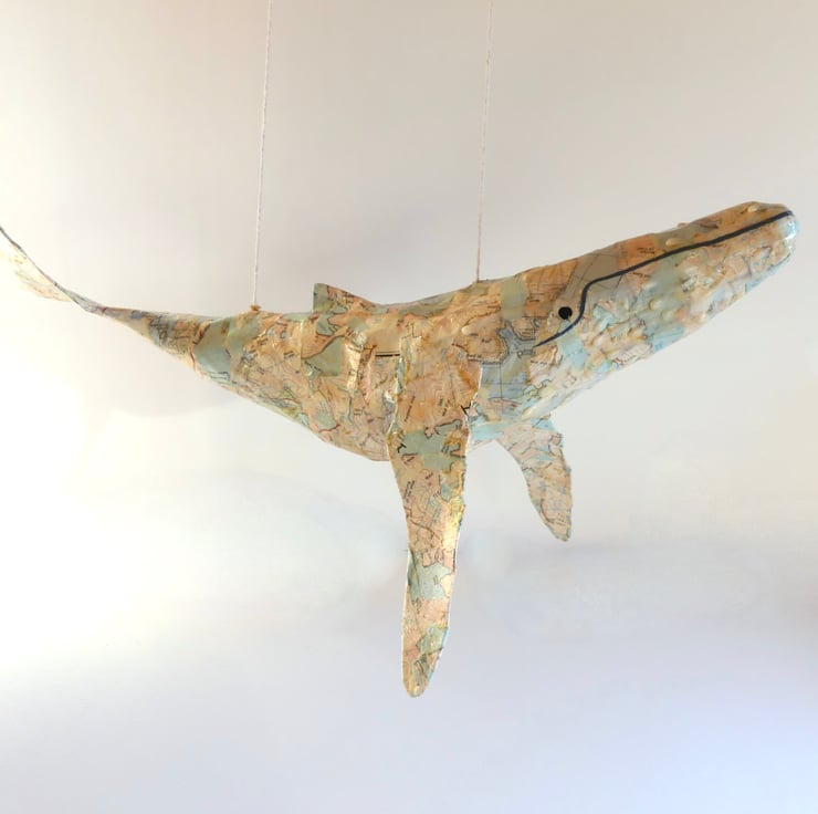 Your hanging whale sculpture will be lovingly handmade from maps