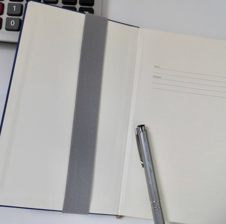 A mini pencil case designed to be kept on the front cover of your diary or journal, held in place with an elastic strap. Just slip it on the front cover and you can always have a pen and pencil to hand. Add it to whichever notebook you are using for the day.