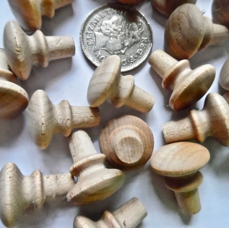 This listing is for a set of 12 small shaker style wooden drawer knobs.