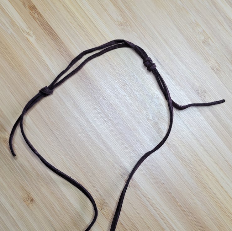 Each pendant is uniquely shaped from Fimo polymer clay, pastel painted, then baked and sealed with a clear varnish. They are hung with a black or brown suede cord tied with a sliding adjustable knot.