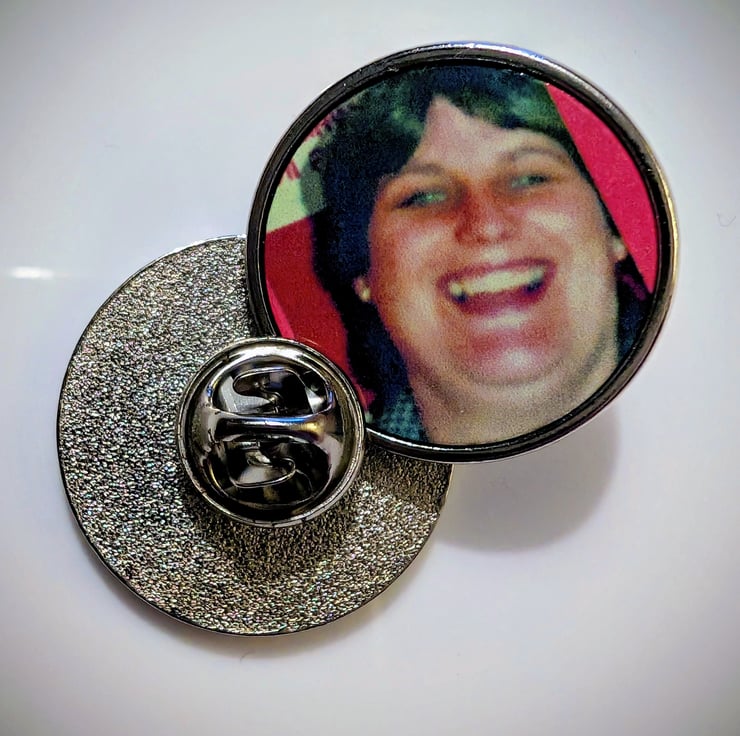 I lost my mum 35 years ago. I can't carry a photo of her incase it gets damaged. So she's on a pin badge on my work lanyard and I love it.