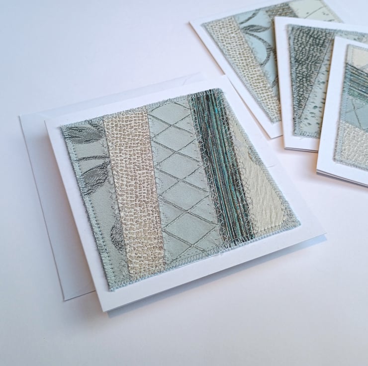 Each card is unique, using different fabrics and stitches (the photos show some examples - your card will be selected at random).