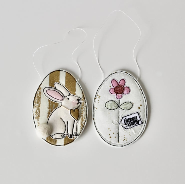 The sewn design is on each side of each egg apart from the eggs with flowers.