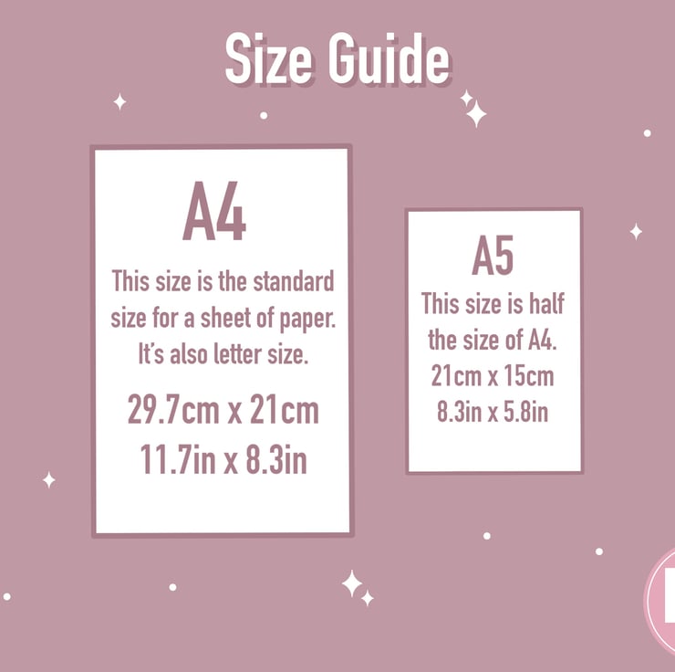 The print comes in two sizes A4 (21x29.7cm) and A5 (15x21cm) and they come unframed.