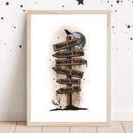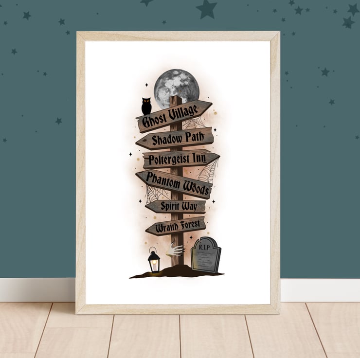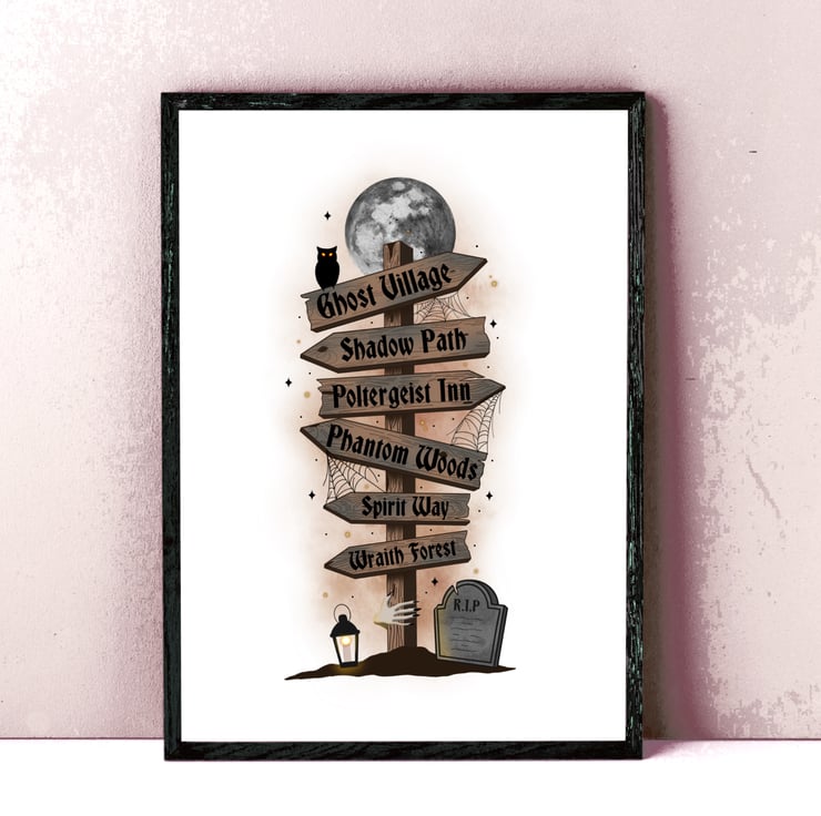 Ghost Name Sign Post Print, Gothic Decor, Spooky Wall Art.
