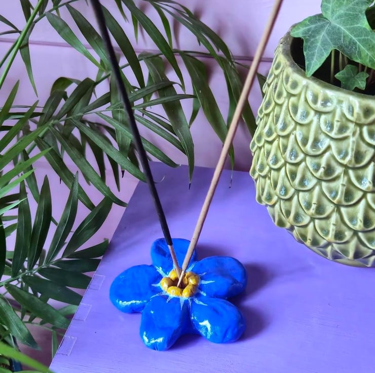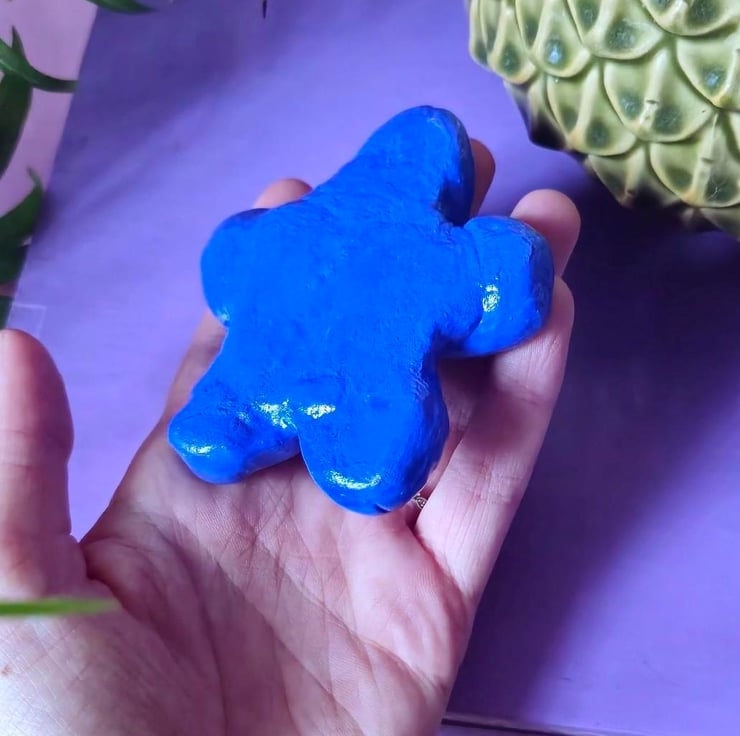 Made with airdry clay and painted with acrylic paint, then finished with a few coats of glossy varnish.