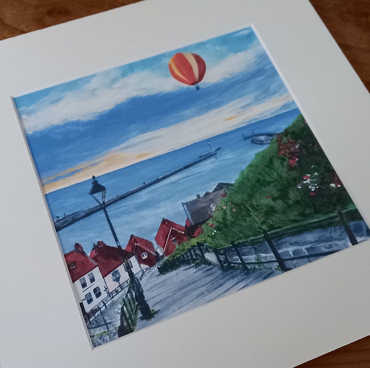 A beautiful open edition print of 'Balloon over Whitby steps' , reproduced from one of my original acrylic paintings.