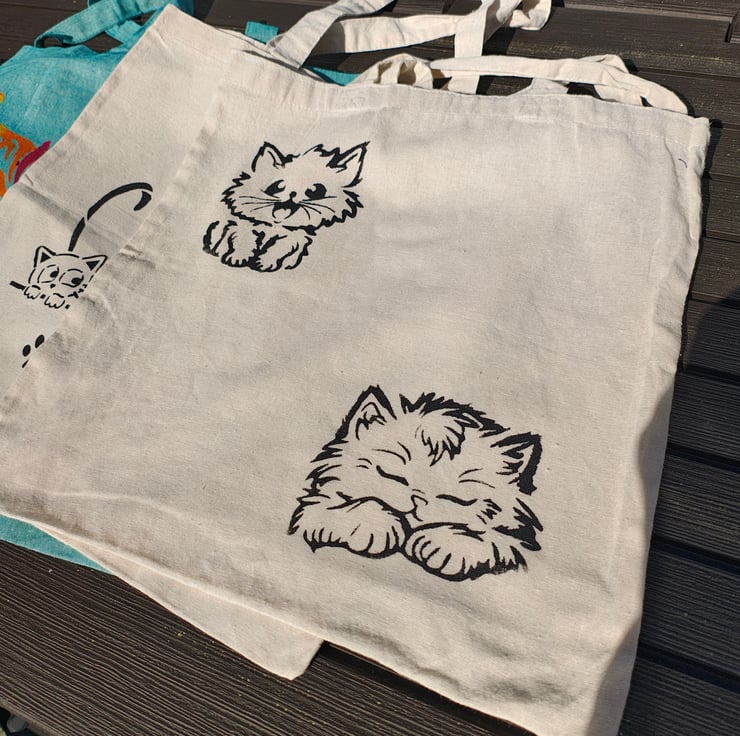 Cotton tote bag with cute kittens hand painted on the . Great as a gift bag or just to carry your shopping.