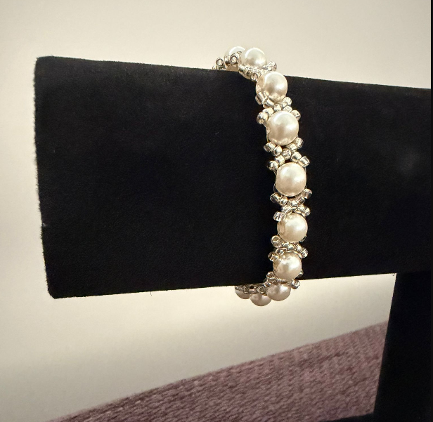 One-of-a-Kind Handmade Bracelet with Glass Beads & Freshwater Pearl
