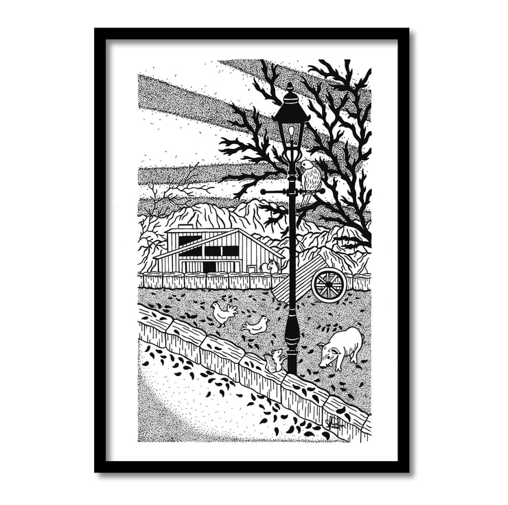 Fits inside an A4 frame NOT INCLUDED. (Frame is shown for display purposes only). Artwork Approx Size: 29.7 x 19.5 cm.