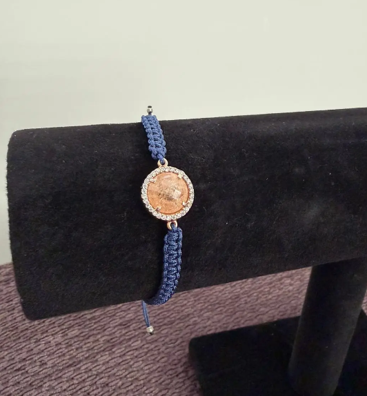 This bracelet features a sleek blue cord and a round Swarovski crystal for a clean, radiant look. A delicate blue cord bracelet. Lightweight, stylish, and perfect for everyday shine.